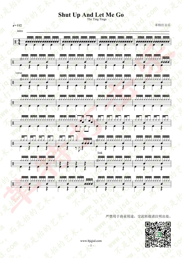 将The Ting Tings的《Shut Up And Let Me Go》架子鼓谱分享给大家,希望演奏这首动感十足的歌曲能给你带来快乐!